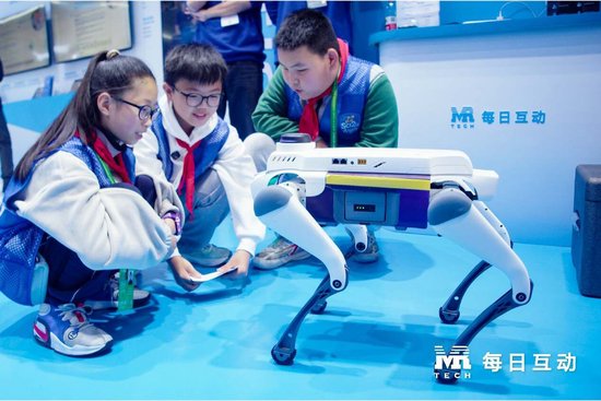 ▲云深AI机器狗接待浙江省科普联合会“少年科小二”来访