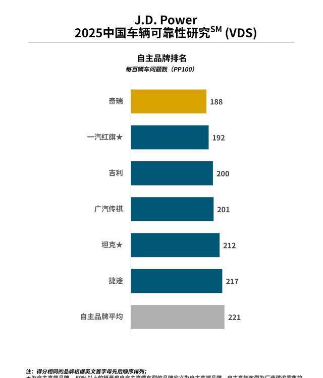 近几年,随着国产车品牌不断发展,它们的产品品控表现也是越来越好。而根据J.D. Power最新发布的2025年中国车辆可靠性研究结果来看,自主品牌的表现格外引人关注。在这份以"每百辆车问题数"为衡量标准的榜单上,多个国产汽车品牌展现出了令人欣喜的进步。奇瑞汽车以出色的成绩领跑自主品牌阵营,成为国产车可靠性方面的头名。一汽红旗紧随其后,作为自主高端品牌的代表,其表现同样可圈可点。吉利与广汽传祺的竞争尤为激烈,两者以微小差距分列第三、四位。坦克和捷途则稳居自主品牌平均线之上,共同构成了国产车可靠性的第一梯队。这份研究不仅反映了国产车在品质管控上的整体提升,也为消费者选购自主品牌提供了权威参考。国产车别瞎买!2025质量最好六大品牌:红旗亚军十大配资平台app下载,吉利险胜传祺!