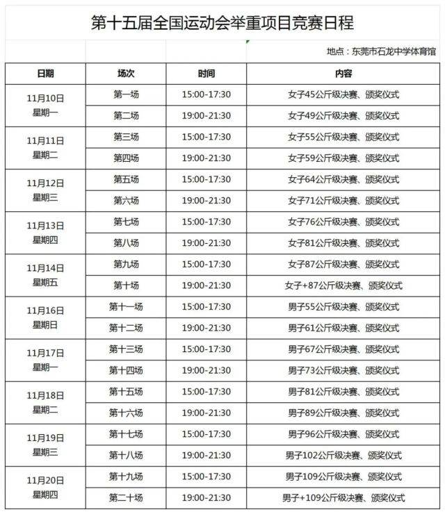 备受瞩目的第十五届全运会“广汽昊铂杯”举重比赛定于11月10日至20日举行。赛事共设20个竞赛级别,预计将吸引来自全国各地的约400名精英选手齐聚石龙。多位奥运冠军、世界冠军及全国纪录保持者将在石龙中学体育馆同台竞技,角逐桂冠。